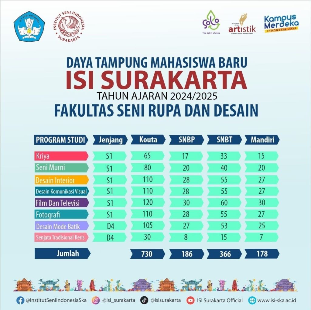Daya Tampung Mahasiswa Baru FSRD ISI Surakarta Tahun Akademik 2024/2025