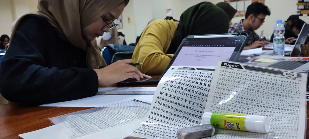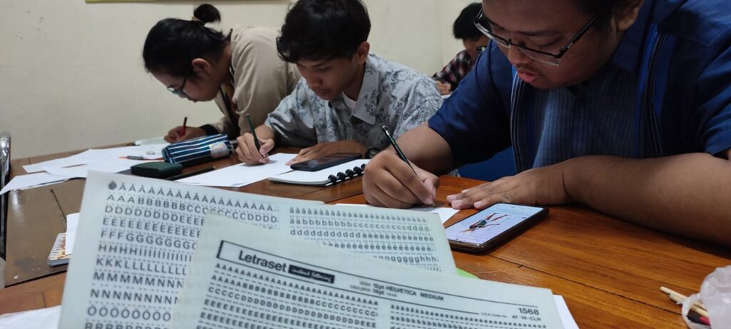 Proses pembelajarannya dimulai dengan pengenalan teori dasar tipografi, dilanjutkan dengan praktik mengaplikasikan Rugos dan Lettraset pada media poster. Metode pembelajaran ini memiliki beberapa kelebihan. Pertama, metode ini dapat membantu mahasiswa untuk memahami prinsip tipografi secara mendalam. Dengan mengaplikasikan Rugos dan Lettraset, mahasiswa dapat merasakan secara langsung bagaimana jarak antar huruf, baris, dan kolom dapat mempengaruhi tampilan sebuah desain khususnya readability dan legibility.