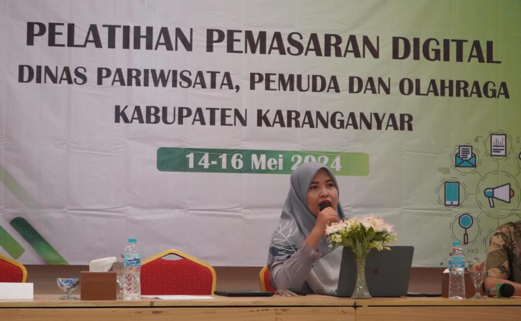 Acara yang bertajuk “Pelatihan Digital Marketing dalam Memajukan Pariwisata Berdaya Saing” yang diadakan oleh Dinas Pariwisata Pemuda dan Olahraga Kabupaten Karanganyar menghadirkan narasumber, salah satunya yakni Isnawati Muslihah, S.Kom., M.Cs dosen dari Prodi Desain Komunikasi Visual FSRD ISI Surakarta.