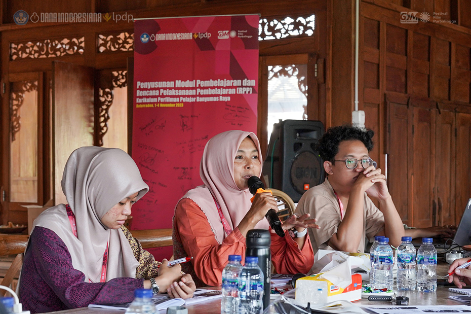 ”Senang sekali ya, berkesempatan terlibat dan turut memberikan sumbangsih apa yang saya bisa dan mampu. Ya karena kurikulum dan modul bagi ekskul film ini akan digunakan oleh kami juga sebagai guru pembina,” ungkap Brajna Bhadra, M.Kom guru mata pelajaran Desain Komunikasi Visual (DKV) SMK Negeri 1 Banyumas.
