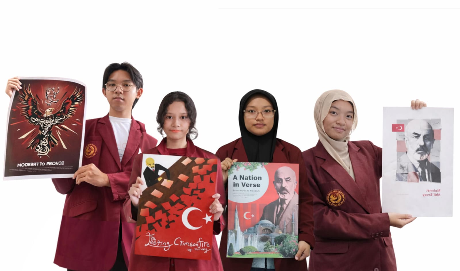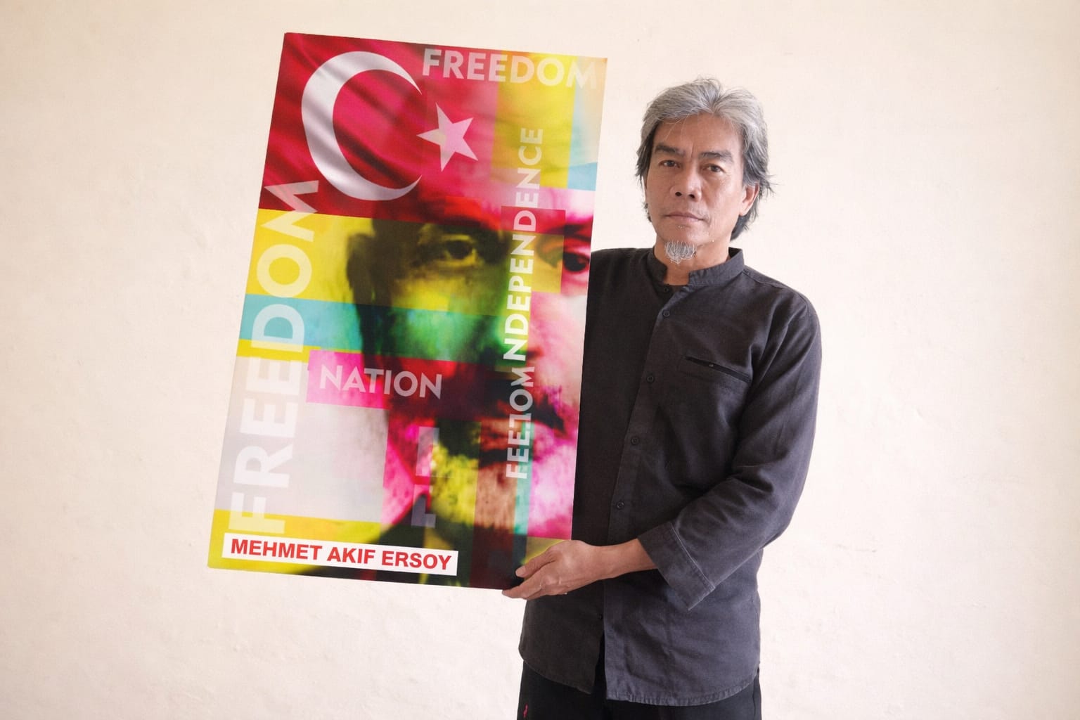 Poster karya mahasiswa yang berukuran A3 ini sesuai tema pameran yang menampilkan simbol dan karakter wajah Mehmet Akif Ersoy sebagai simbolis akan makna perjuangan bangsa Turki untuk kemerdekaan dan kebebasan, lewat Istiklal Marşı sebagai lagu kebangsaan Turki.