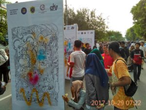 Aksi turun ke CFD, akan menampilkan karya Doodle Art dari mahasiswa Prodi DKV FSRD ISI Surakarta (Angkatan 2016) yang bertema seputar nasionalisme, semangat persatuan dan kesatuan, Bhinneka Tunggal Ika, pemuda anti korupsi, serta kampanye anti hoax yang dicetak ukuran besar dan dipajang di media triplek (uk. 124 X 244 cm) sebanyak 9 karya, dimana karya doodle ini sebagai bagian dari tugas mata kuliah Ilustrasi Terapan di semester III.