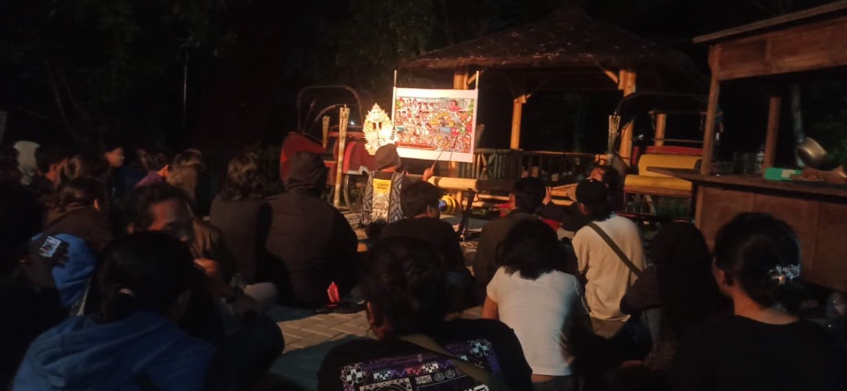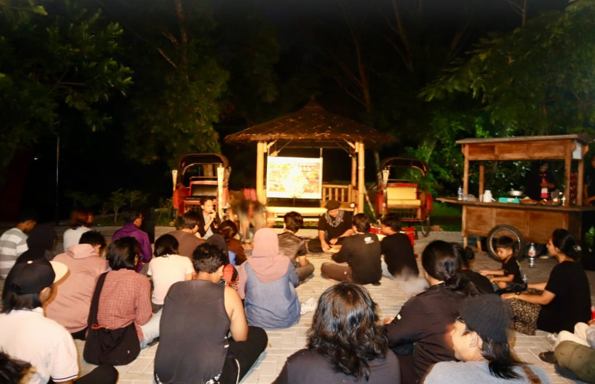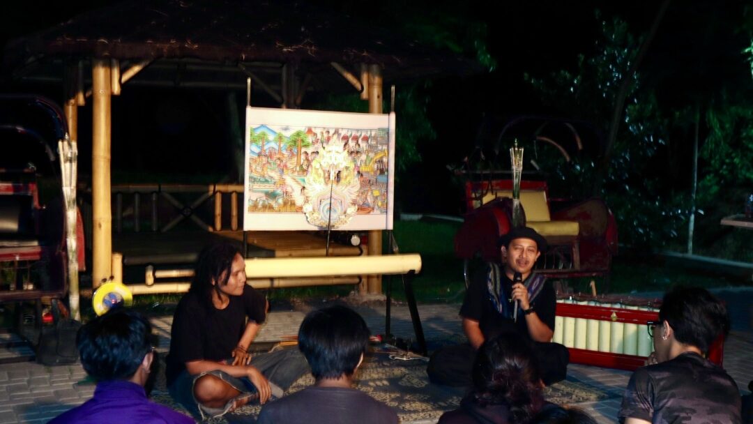 Forum Komunikasi Mahasiswa Jurusan Kriya (FKMJ) FSRD ISI Surakarta kembali menggelar Diskusi Fullmoon #8 di plataran terbuka Dekanat FSRD ISI Surakarta, Rabu (08/10/2025). Mengangkat tema “Kriya Atraktif: Wayang Beber”, acara ini menghadirkan seniman sekaligus dalang wayang beber, Faris Wibisono, yang datang langsung dari Pracimantoro, Wonogiri..