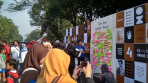 Backdrop untuk menempelkan media kertas berwarna-warni berisi pesan, harapan dan kata – kata motivasi yang akan dituliskan oleh pengunjung CFD Slamet Riyadi secara bebas besuk Minggu, 22 April 2018 mulai jam 06.30 wib berlokasi sekitar depan Halte (depan Museum Radyapustaka).