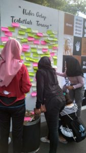 Event kreatif yang berupa ajakan pengunjung CFD Slamet Riyadi untuk menuliskan pesan, harapan atau tulisan motivasi seputar spirit Kartini yang masih relevan di masa ini.