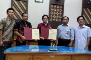 Usai pembahasan teknis kemudian sorenya dilanjutkan pertemuan dengan Rektorat ISI Surakarta. Penamdatanganan MOU dilakukan oleh Ketua LPPMPP (Dr. Slamet M.Hum) dan Kepala BDI (Drs Paryono MM) yang disaksikan oleh Wakil Rektor I (I Nyoman Sukerna) dan Dekan FSRD (Ranang AS). Ketua BDI didampingi oleh Ida Bagus Made Juniartha, ST (Kasie Pengembangan dan Kerjasama) dan Bayu Giri P.