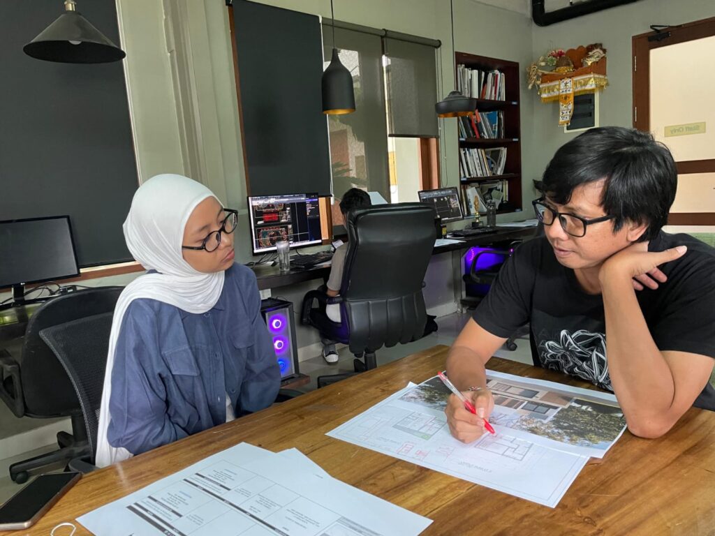 Dua mahasiswa semester 6 Program Studi Desain Interior, Fakultas Seni Rupa dan Desain (FSRD) Institut Seni Indonesia (ISI) Surakarta, Na’il Khuzaimatuzahro’ dan Mohammad Azmi Sholeh, mengikuti program magang mandiri di PT Jeghier Architect Indonesia, sebuah perusahaan arsitektur yang berbasis di Bali. Kegiatan ini merupakan bagian dari pelaksanaan program Merdeka Belajar Kampus Merdeka (MBKM) mandiri yang diselenggarakan oleh Fakultas Seni Rupa dan Desain ISI Surakarta.