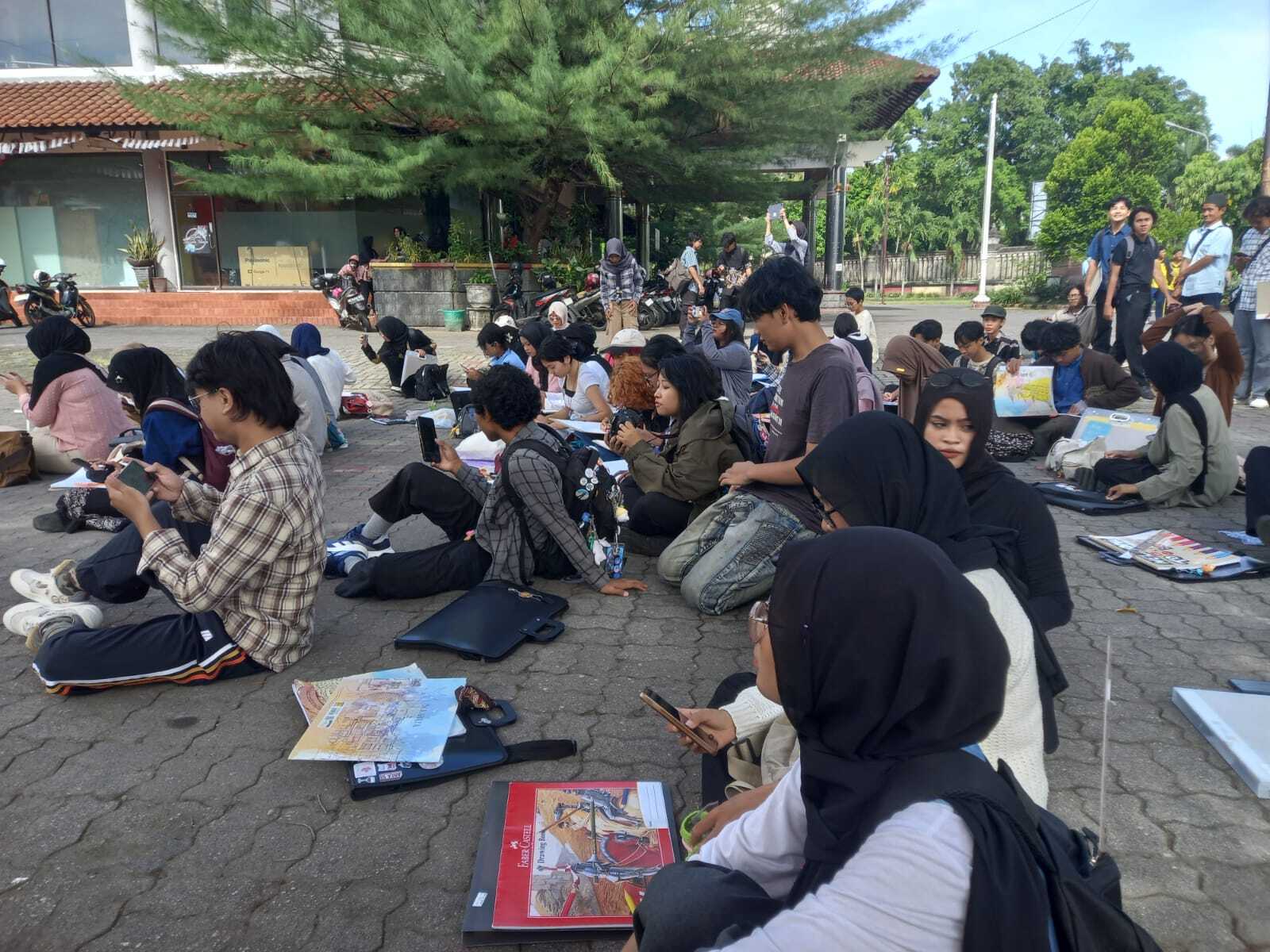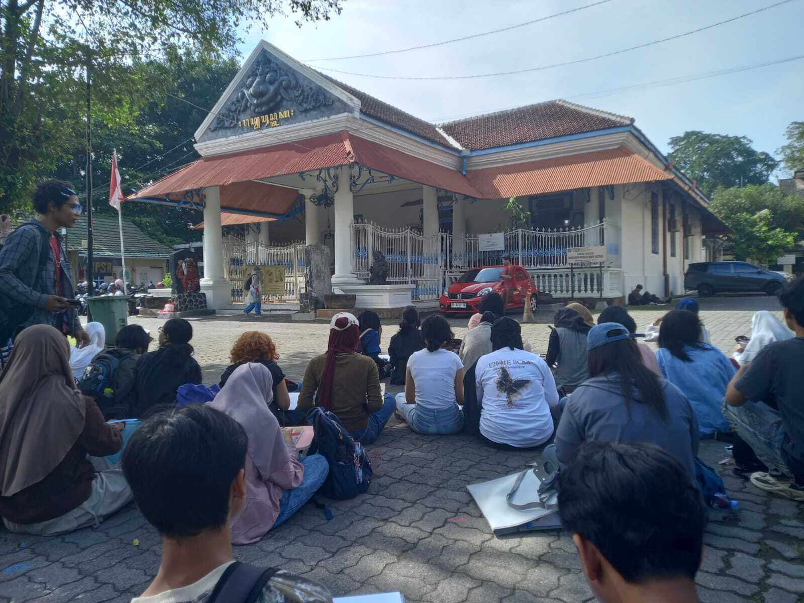 Terlihat hampir sekitar 160an mahasiswa semester I Prodi DKV FSRD ISI Surakarta memenuhi area depan halaman museum.untuk mengikuti Ujian Akhir Semester dengan menggambar langsung di Museum Radyapustaka, Surakarta. Ujian praktek dengan obyek banguan museum menjadi materi obyek ujian praktek untuk mahasiswa angkatan 2025.