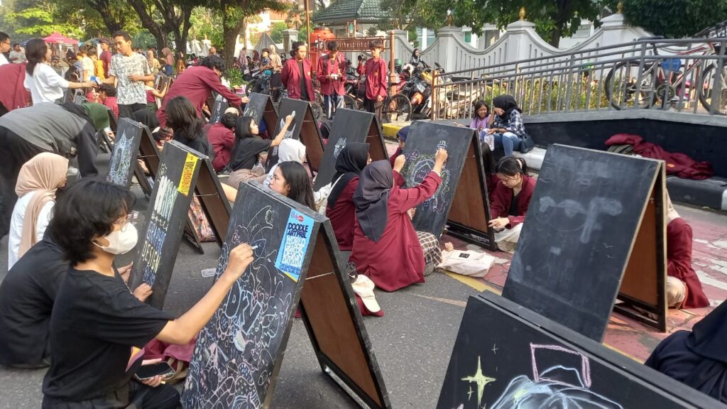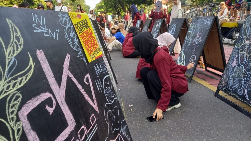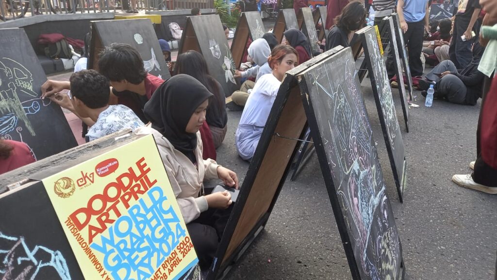 Event yang bekerjasama dengan Komunikotavisual bertajuk Doodle ArtPril World Design Graphic Day 2024 yang diperingati setiap tanggal 27 April ini, dimana beragam goresan doodle art baik berupa obyek makhluk hidup, teks, dan obyek fiktif lainnya tampak di 40 papan triplek yang berjajar di sepanjang CFD Slamet Riyadi Solo pada Minggu pagi.
