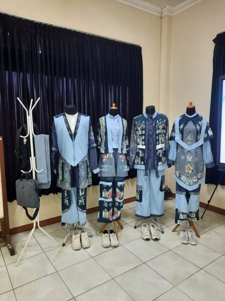 Hasil Proyek Independen MBKM yang sekaligus juga sebagai karya TA sejumlah 2 (dua) busana casual wanita kombinasi batik tulis dan 2 (dua) busana casual pria kombinasi batik tulis. Judul TA yakni “Pengembangan Dua Belas Pakem Motif batik Bekasi Pada Busana Casual Pria dan Wanita Dewasa Sebagai Bentuk Pelestarian Batik Bekasi” diujikan pada Hari Rabu, 11 Juni 2025 di Ruang Sidang 1, Gedung Dekanat FSRD ISI Surakarta, Kampus Mojosongo. Dengan Ketua Penguji Dr. Aries Budi Marwanto, S.Sn., M.Sn., Penguji Utama Agung Cahyana, ST., M.Eng. dan Penguji Bidang: Dr. Aan Sudarwanto, S.Sn., M.Sn.