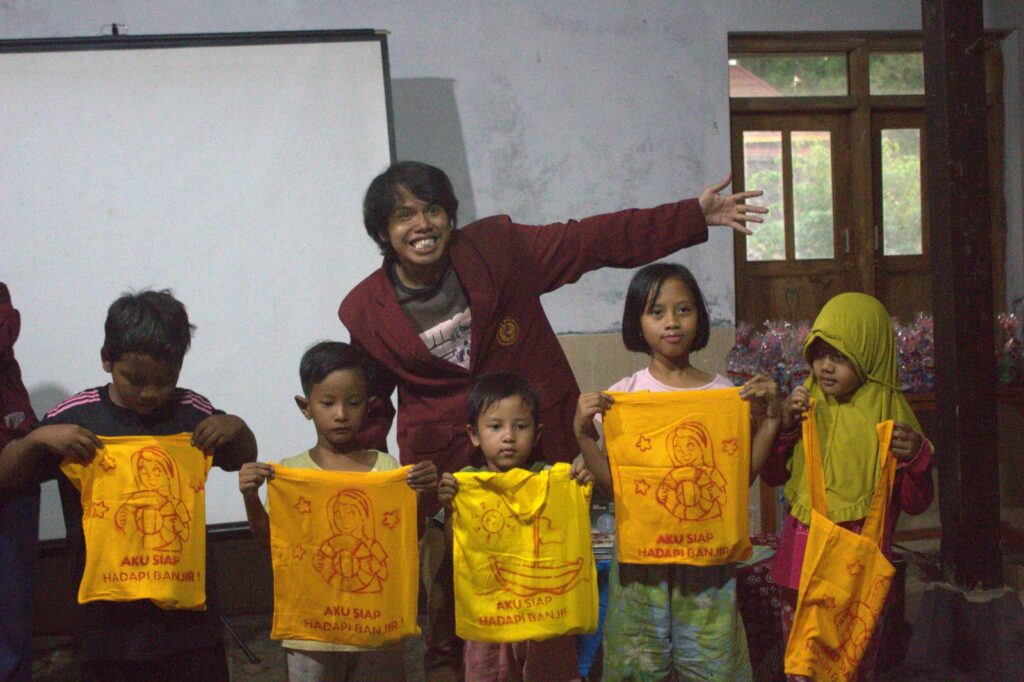 Seperti diketahui, Dukuh Nusupan, Desa Kadokan, Grogol Sukoharjo adalah area terdampak banjir tahunan karena posisi lokasi dukuh yang diapit oleh arus kali Premulung dan Bengawan Solo. “Dalam satu tahun, bisa hingga empat kali banjir, tergantung curah hujan. Di awal tahun 2023 tergolong sangat parah banjirnya,” tutur Bapak Ari, Kepala Dusun Nusupan. Banjir di Desa Nusupan cukup sulit dicegah karena kondisi geografisnya. Maka, masyarakat perlu dikuatkan terkait kesadaran antisipasi dan mitigasi banjir. Lebih lanjut, Dosen Pembimbing tim PPK Ormawa Himadiska, Anisa Putri Cahyani, S.Pd., M.Pd, menambahkan, “edukasi dengan pendekatan ala anak-anak adalah cara strategis, yang diharapkan dapat membantu menguatkan kesadaran generasi cilik tentang apa yang harus dilakukan pada sebelum, saat, dan sesudah banjir melanda.”