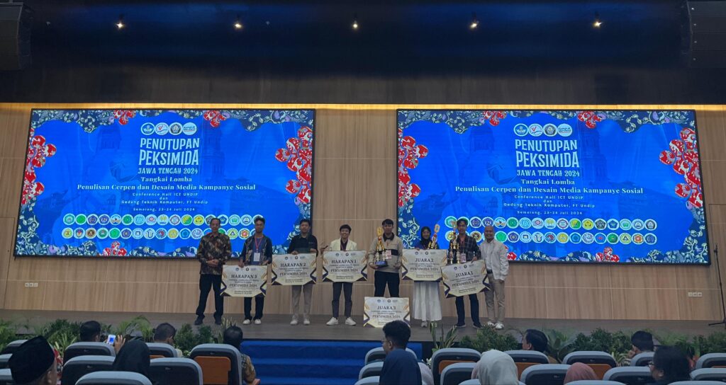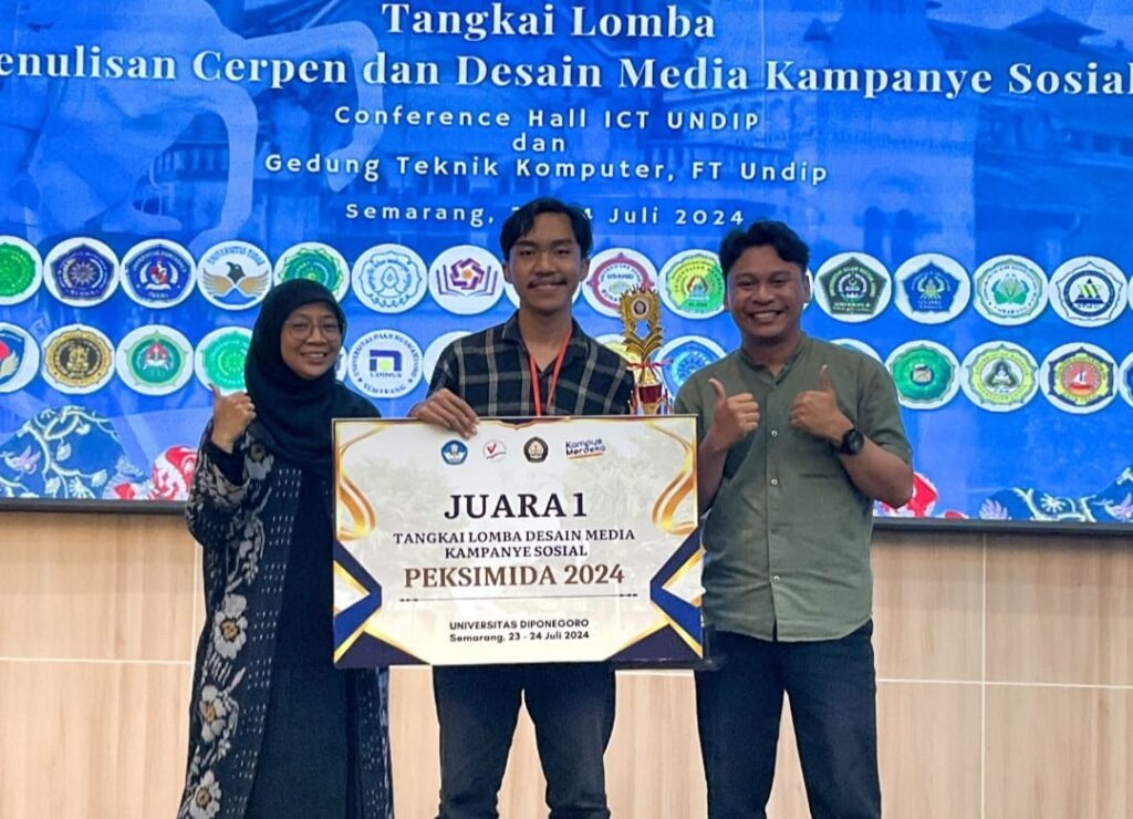Sebagai juara pertama dalam Lomba Desain Media Kampanye Sosial, Dwinanda Fatkhul Huda berkesempatan mewakili Jawa Tengah pada Pekan Seni Mahasiswa Nasional (Peksiminas) yang akan diselenggarakan pada bulan September 2024 mendatang di Universitas Negeri Jakarta (UNJ).