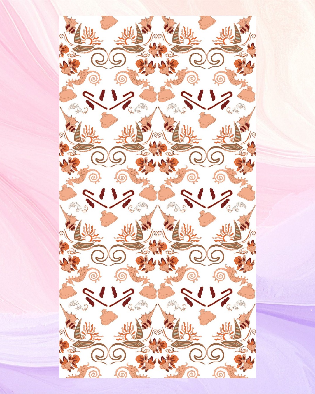 Motif batik ini menampilkan dialog visual antara keindahan laut dan ancaman kerusakan ekosistem. Garis ombak berlapis melambangkan dinamika kehidupan pesisir dan ketangguhan nelayan, siluet ikan serta biota laut merepresentasikan kehidupan yang terancam, sementara bentuk abstrak sampah plastik menjadi simbol kerusakan kecil yang berdampak besar. Aksen karang dihadirkan sebagai harapan akan pemulihan ekosistem jika kepedulian kembali tumbuh.