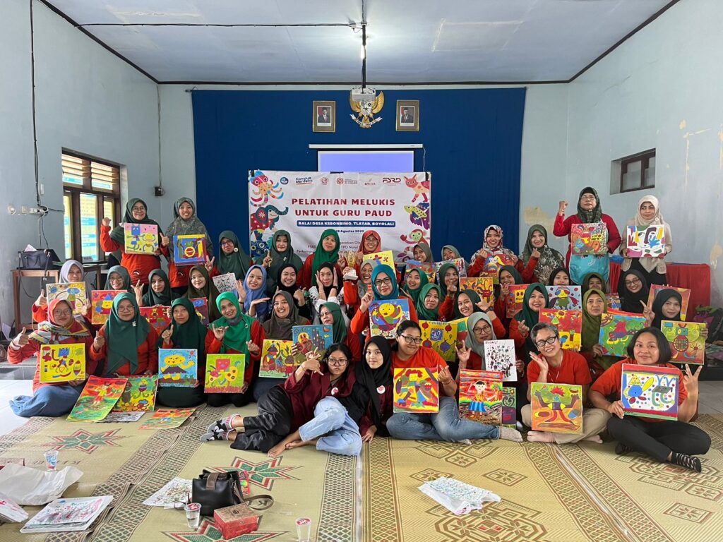Sebagai salah satu bentuk kegiatan Tridharma Perguruan Tinggi, Dosen FSRD ISI Surakarta fasilitasi kegiatan pelatihan melukis untuk HIMPAUDI, sebuah himpunan guru PAUD di Kecamatan Boyolali, Kabupaten Boyolali Jawa Tengah, Sabtu (19/8). Kegiatan ini merupakan wujud pengabdian pada Masyarakat yang dilakukan oleh Devi Nirmala Muthia Sayekti, M.A. dan Dessy Rachma Waryanti, M.Sn. selaku dosen dari FSRD ISI Surakarta. Kegiatan ini diikuti oleh 45 peserta yang merupakan perwakilan dari sejumlah TK dan PAUD se-Kecamatan Boyolali dan sekitarnya.