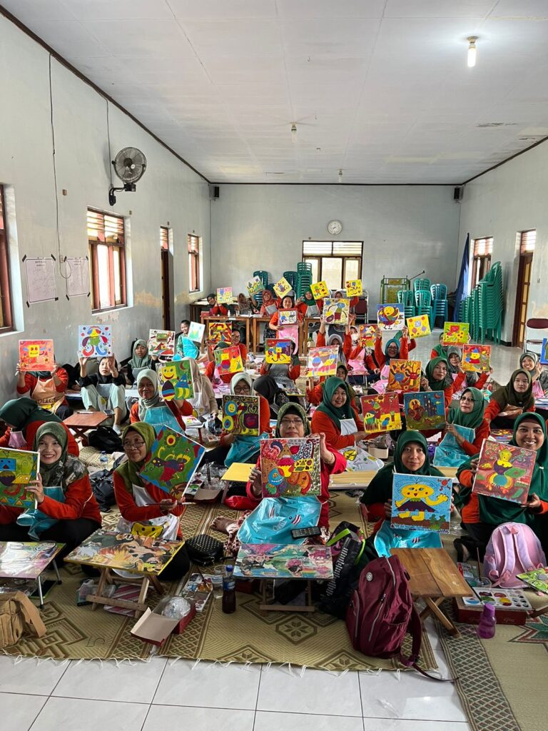Tak hanya melibatkan dosen, kegiatan ini juga mengajak dua orang mahasiswa dari prodi Seni Murni yaitu Adinda Cantika Lestari dan Kenya Ayu Prahasdita. Kegiatan ini diselenggarakan dengan tujuan untuk mengoptimalkan kemampuan para guru PAUD dalam mengajarkan seni menggambar dan melukis pada peserta didik. Selain itu, kegiatan ini juga dikemas dengan cara yang menyenangkan sebagai bentuk manifestasi dari art healing yang saat ini tengah naik daun di bidang ilmu psikologi. Terlebih, melihat peserta yang semuanya merupakan wanita dengan status ibu yang bekerja, medium seni sebagai ruang ekspresi untuk healing produktif yang menyenangkan bagi para peserta.