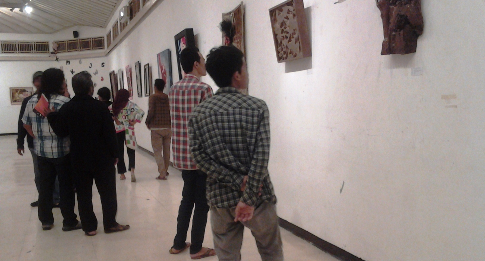 Pengunjung melihat hasil Karya Seni di Galery Seni Rupa Taman Budaya Jawa Tengah Surakarta