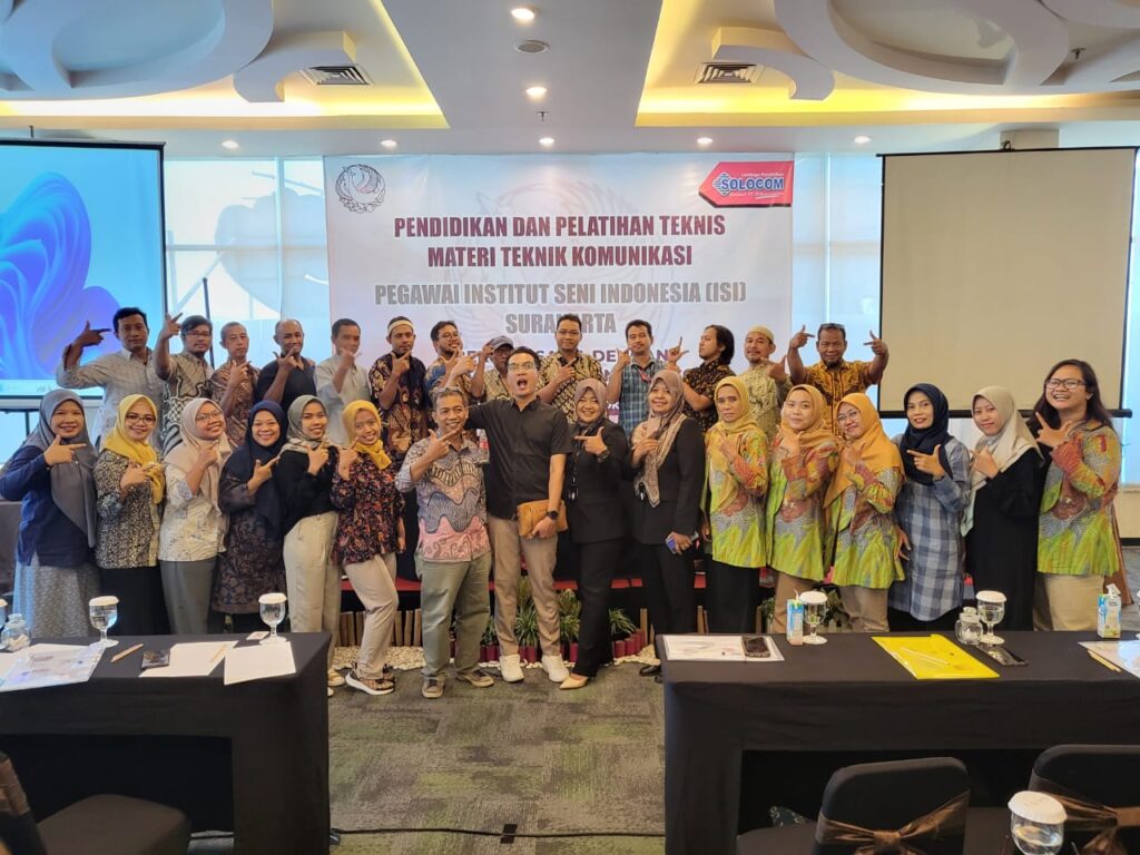 Institut Seni Indonesia (ISI) Surakarta bekerja sama dengan Lembaga Pendidikan Solocom menyelenggarakan pelatihan teknis mengenai teknik komunikasi. Kegiatan dilaksanakan di Fave Hotel, Solo Baru, diikuti oleh 27 tenaga kependidikan di lingkungan ISI Surakarta. Acara dibuka oleh Wakil Dekan II FSRD ISI Surakarta Bapak Amir Gozali, S.Sn., M.Sn.