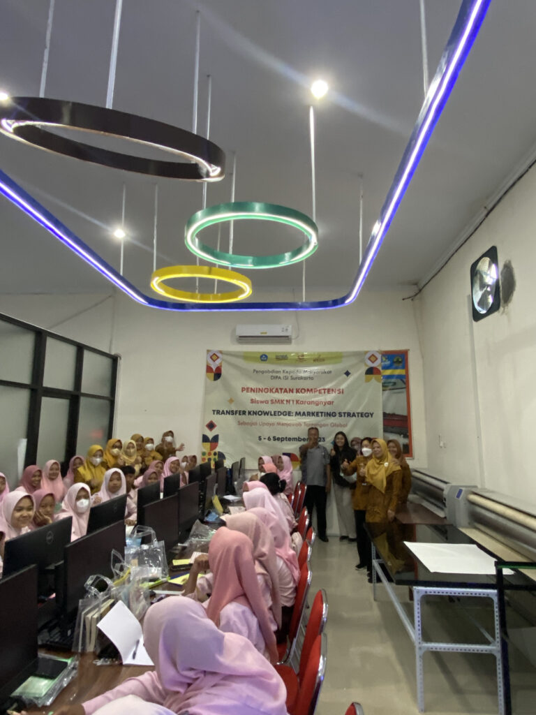 Program ini dilaksanakan pada tanggal 5-6 September 2023 dan dibuka oleh penanggungjawab Program Studi Tata Busana SMK N 1 Karanganyar. Program yang dilaksanakan mulai pukul 07.30 ini memberikan tambahan pengetahuan pada siswa SMK N 1 Karanganyar khususnya siswa jurusan Tata Busana, dengan konten materi antara lain mencakup Marketing in Digital Era, Budaya Konsumen, dan Fashion sebagai Komunikasi Identitas Sosial.