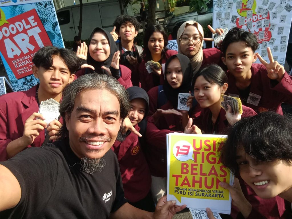 Kegiatan yang sekaligus juga memeriahkan dies natalies 13 tahun DKV ISI Surakarta lewat beragam gambar doodle art yang berwarna hitam putih bertujuan memberi edukasi dan persuasif kepada masyarakat dari pesan baik berupa gambar dan teks yang berjumlah 30an.