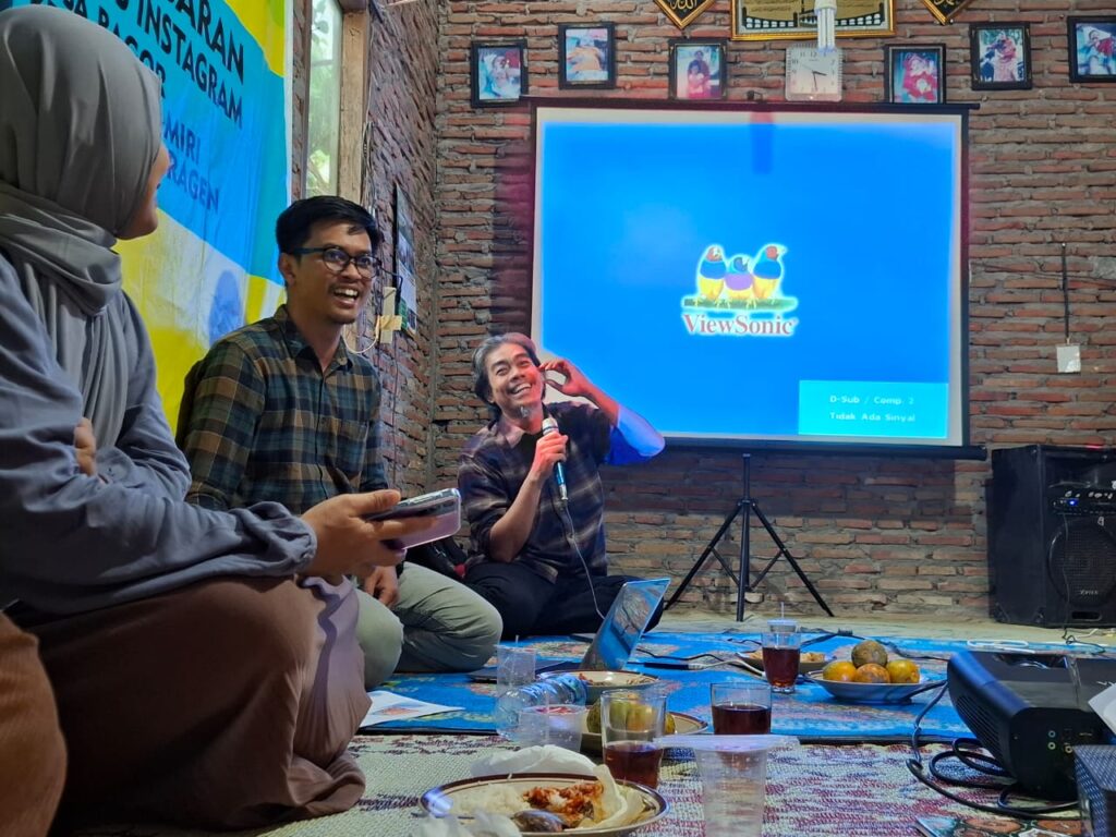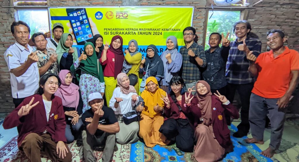Sekilas peserta sedang asyik mengoperasikan handphone dibantu oleh tim dosen dan mahasiswa Prodi DKV FSRD ISI Surakarta, dimana warga masyarakat yang tergabung dalam kelompok UMKM Desa Bagor, Kecamatan Miri, Kabupaten Sragen ikut serta kegiatan yang berfokus peningkatan aspek pemasaran di media sosial Instagram.